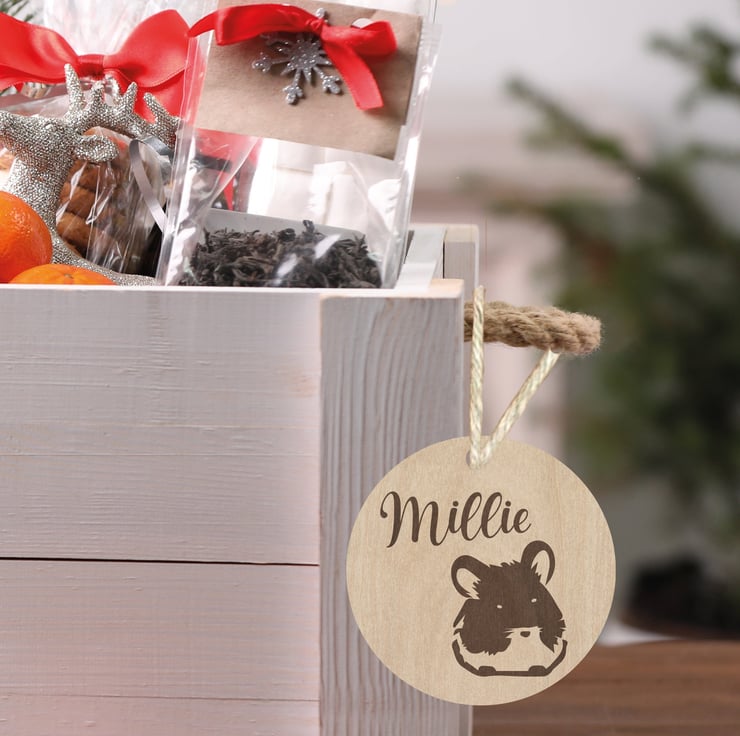 Hamster engraved, personalised wooden Christmas tree ornament or Gift Tag. The perfect keepsake from someone special.
