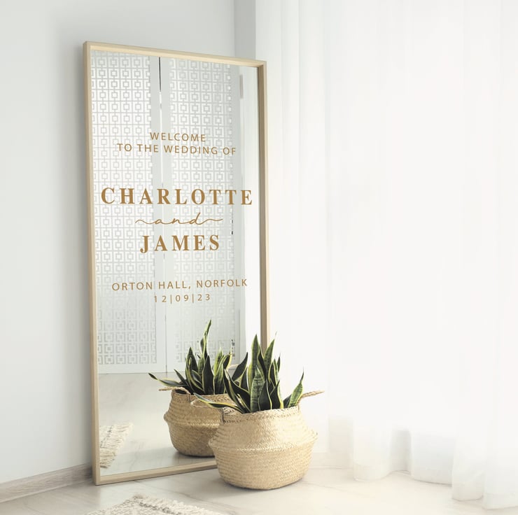 Wedding Welcome Mirror Sticker - Personalised Name, Location And Date DIY Mirror