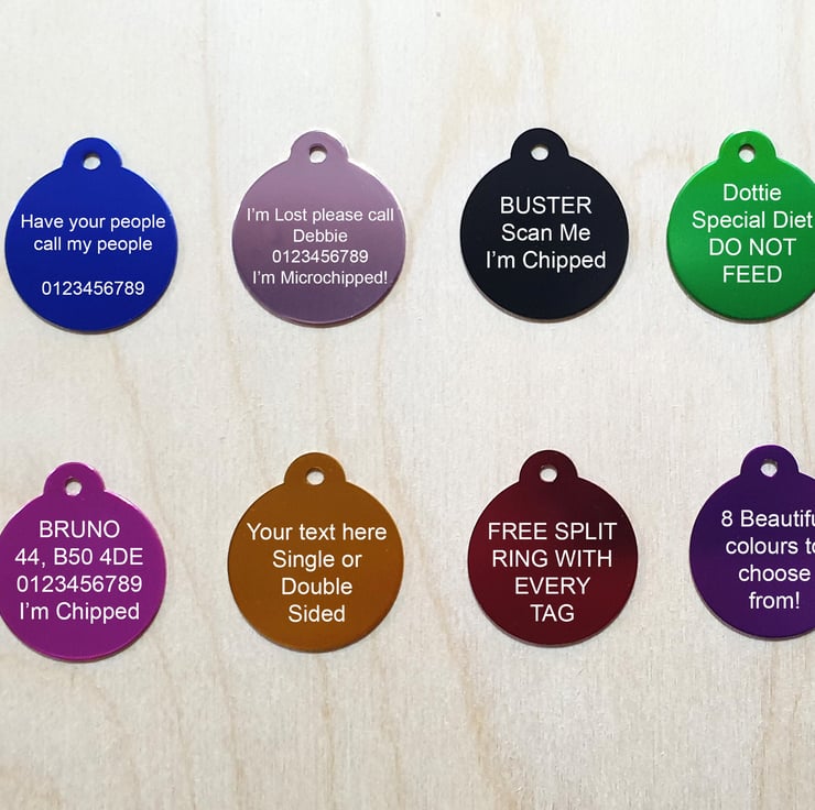 Each tag has a free split ring for attaching the tag to the pets collar.