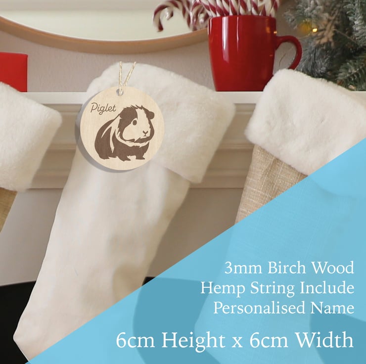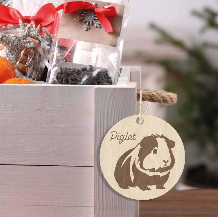 Guinea pig engraved, personalised wooden Christmas tree ornament or Gift Tag. The perfect keepsake from someone special.