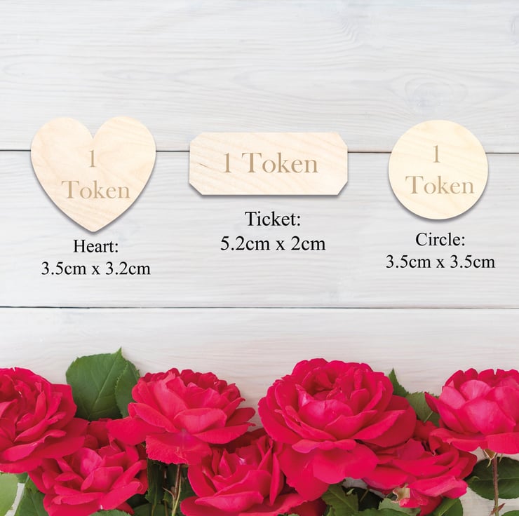 Choice of 1, 5 or 10 tokens. Double sided engraved with three shapes. 20 characters max for each token.