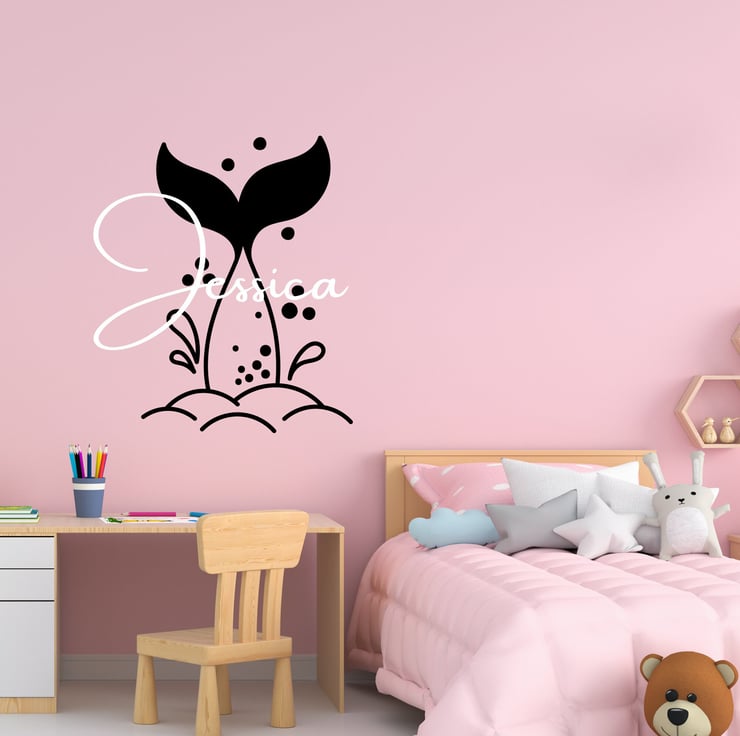 Personalised Mermaid Name Bedroom Wall Sticker - Mermaid Tail and Name. Self-adhesive to make the perfect touch to your children's bedroom.