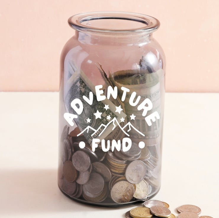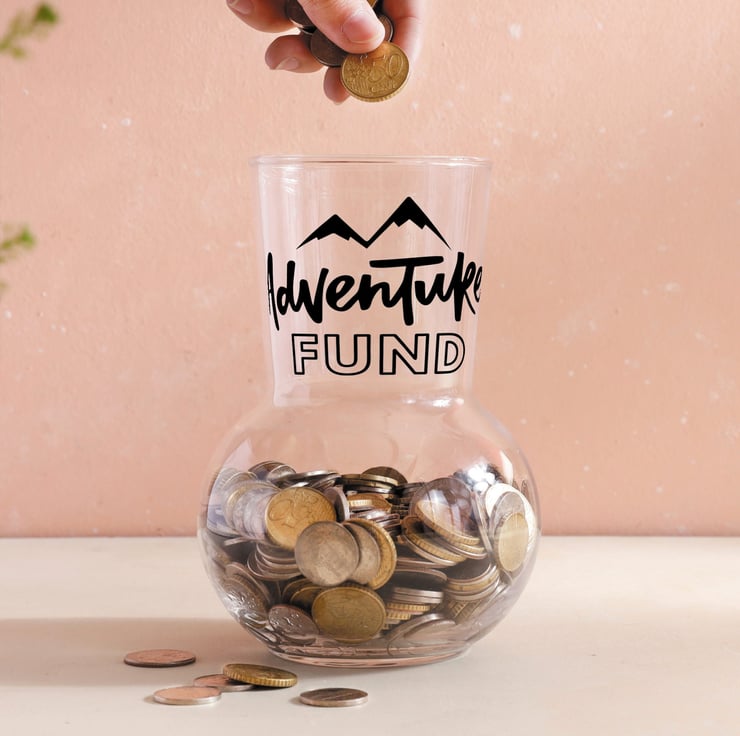 Adventure Fund - Get saving for your holiday with these amazing jar stickers. A great addition to any jar or other, with 5 sizes available. They Can be applied to most clean smooth surfaces and when applied to a money holder, can make a special gift for the travellers in your life.