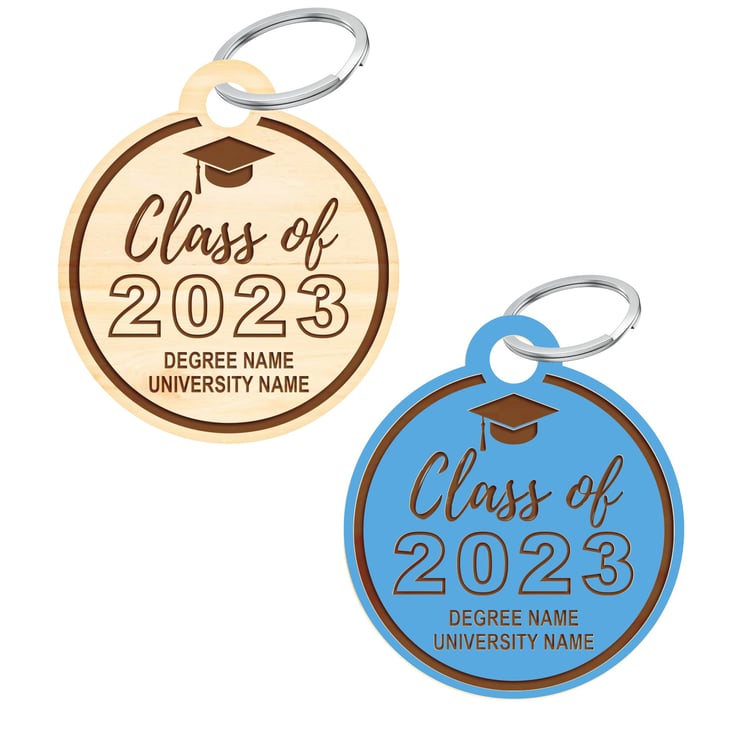 These key-rings are made from 3mm thick birchwood. This wood has a lovely grain which allows for a beautiful finish once engraved. We also offer a colour vinyl overlay. This is the exact same design with the engraved writing, but with your choice of colour ontop of the wood. This makes for a sleeker look and can make the keyring more personalised to the recipient's style. Please see our colour chart pictures to help you choose.