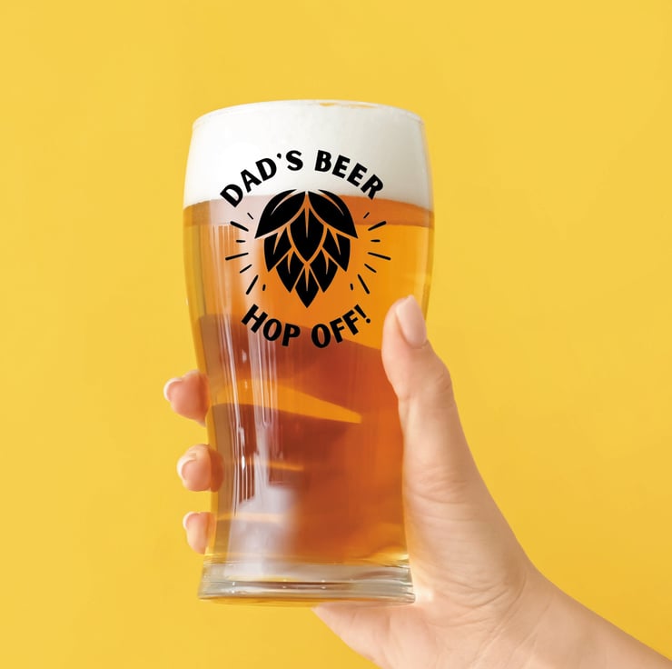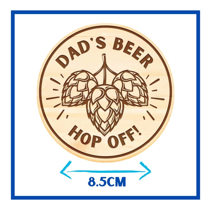 Funny beer themed gift for dad. Great for Christmas, birthday, and Father's Day. "Dad's Beer, Hop Off" coaster and glass decal - Available individually or as a great value bundle set.