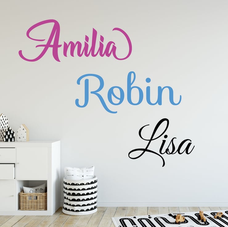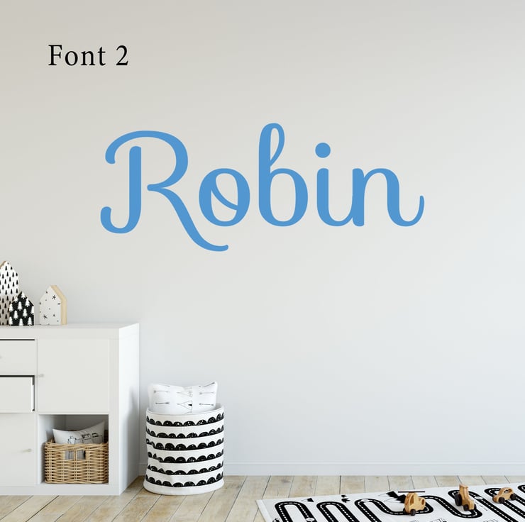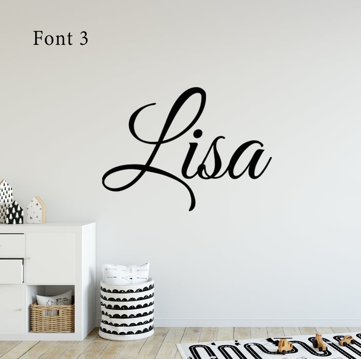 The width of each sticker is either 10cm, 20cm, 30cm, 40cm, 50cm or 60cm and the height will vary on the amount of characters in your chosen name/word.