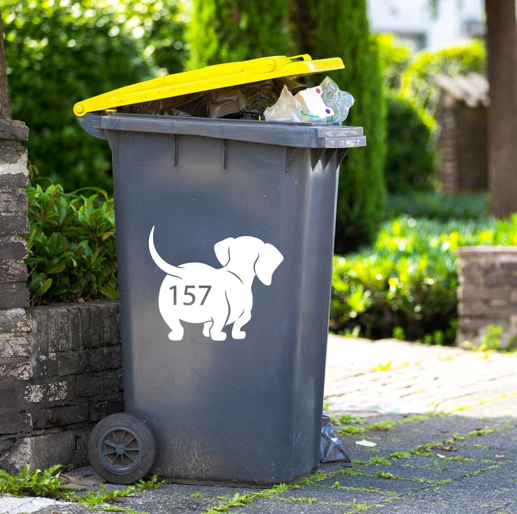 Personalised Wheelie Bin Sticker Dog dachshund Silhouette Funny Custom Number