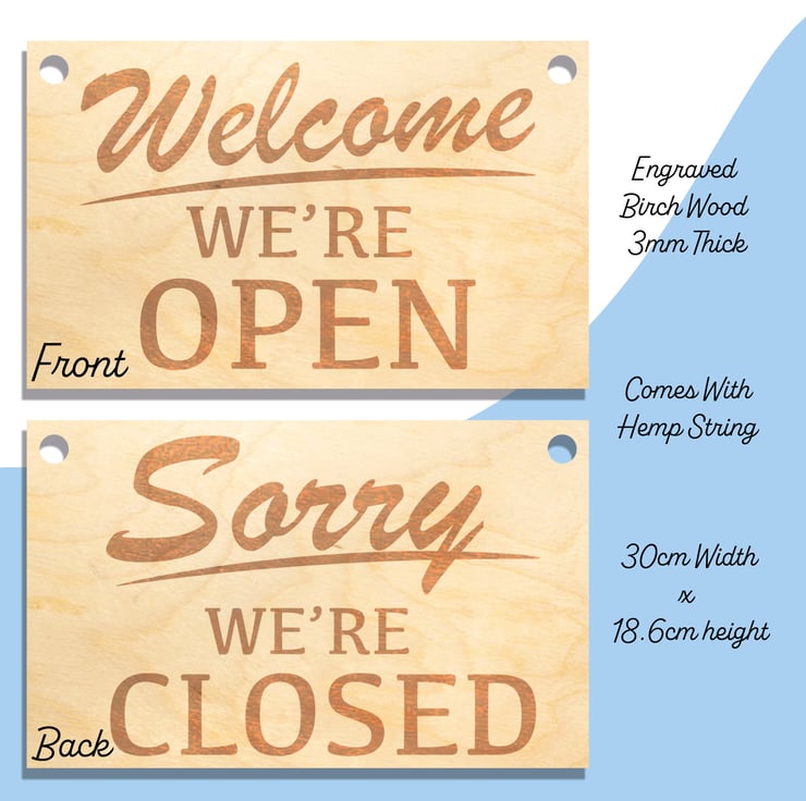 Shop open and closed sign - double sided sign that comes with hemp string. Great for hanging in the shop windows.