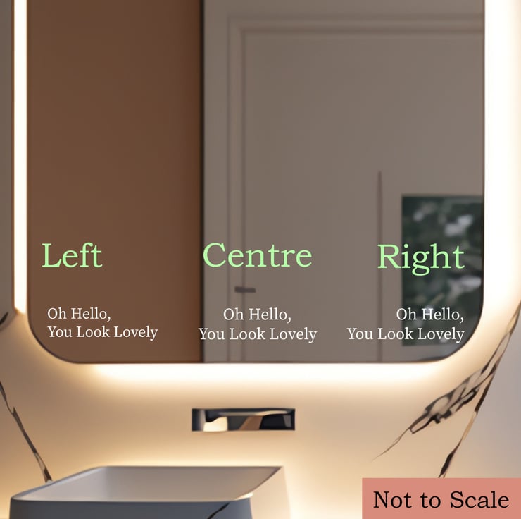 With a choice of the wording being left, right, or centered to suit the mirror you are working with.