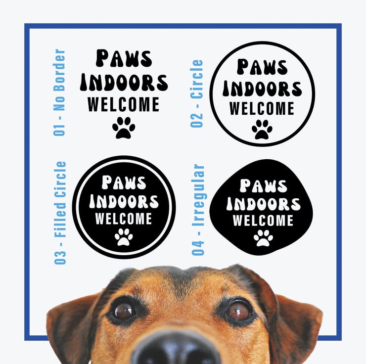 Are you dog friendly? Advertise it and meet new furry friends. With 4 great styles to choose from, these 'Paws Indoors Welcome' stickers are the perfect spin on the classic 'Dogs Welcome' sign.