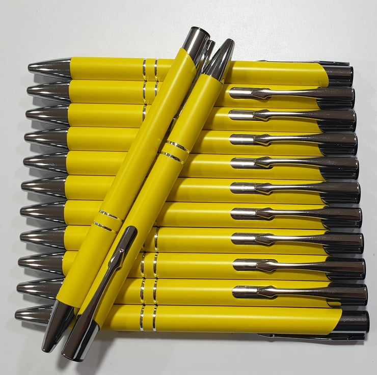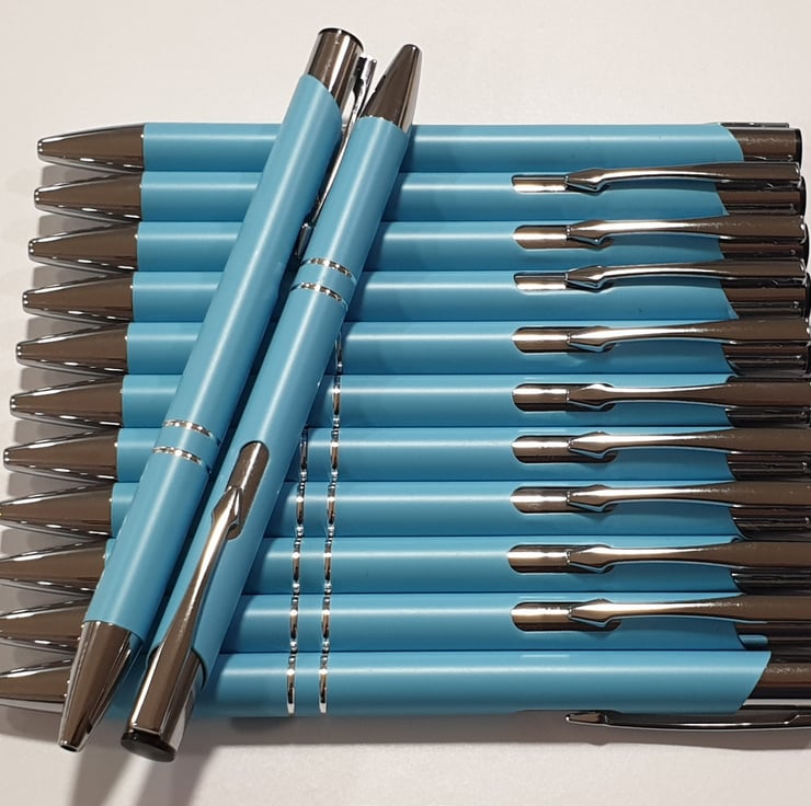 We have a wonderful range of colours available, Please select your colour and add your message. The pens have a nice weight to them and feel very elegant. Each pen has blue ink but we do sell black refills if you would like to change the colour.