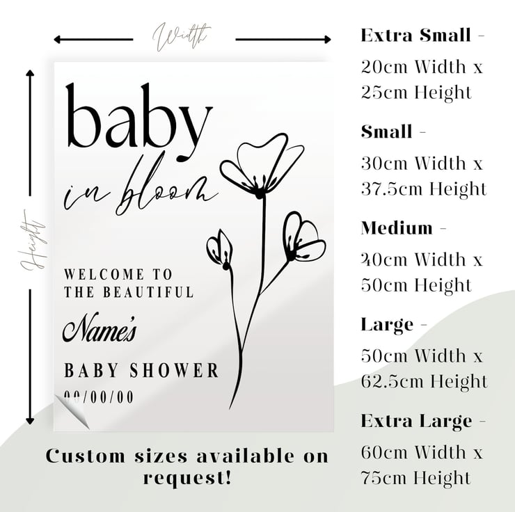 Baby In Bloom - Personalised Baby Shower Welcome Sticker Decal For DIY Sign