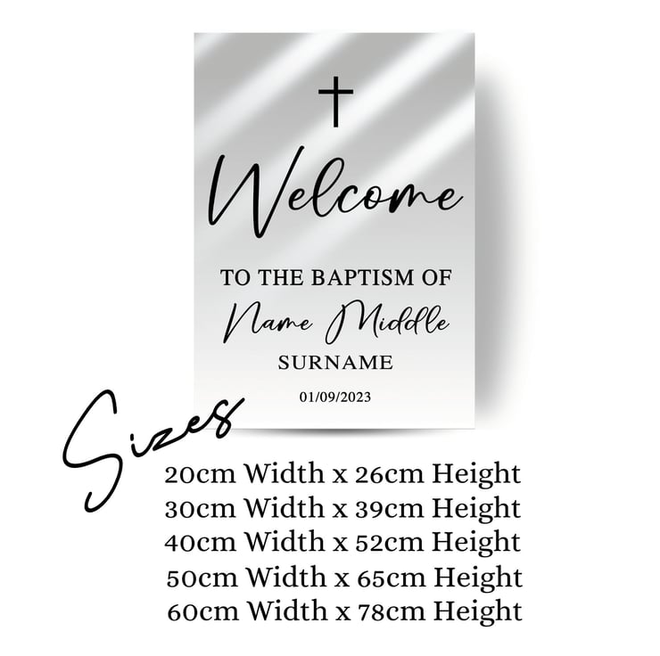 Beautiful custom Baptism mirror sticker. The perfect elegant welcome. An Amazing piece of decor as well as creating a fantastic photo opportunity for you and your guests to enjoy.
