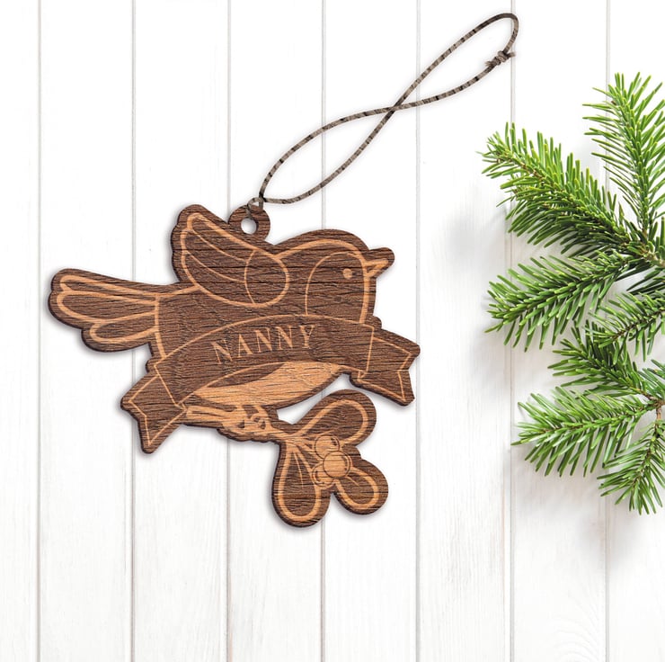 Beautifully engraved, personalised wooden Christmas tree ornament. The perfect thoughtful keepsakememorial bauble for Christmas. We offer a range of woods to match most tree aesthetics. Whether you're going for rustic and boho or Sleek and modern, we've got you covered!