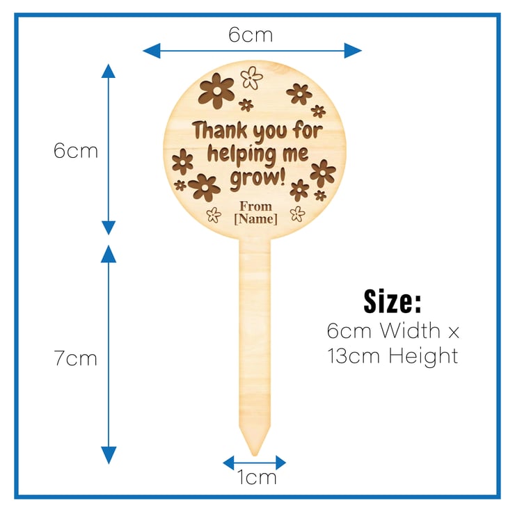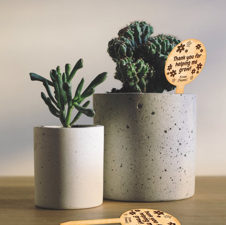 Beautiful personalised engraved wood succulent planter tags. Perfect thank you gift for those special teachers. Works great with any small plants.