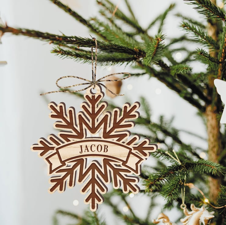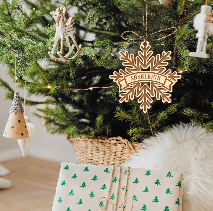 Beautifully engraved, personalised wooden Christmas tree ornament. The perfect keepsake for Christmas. We offer a range of woods to match most tree aesthetics. Whether you're going for rustic and boho or Sleek and modern, we've got you covered!