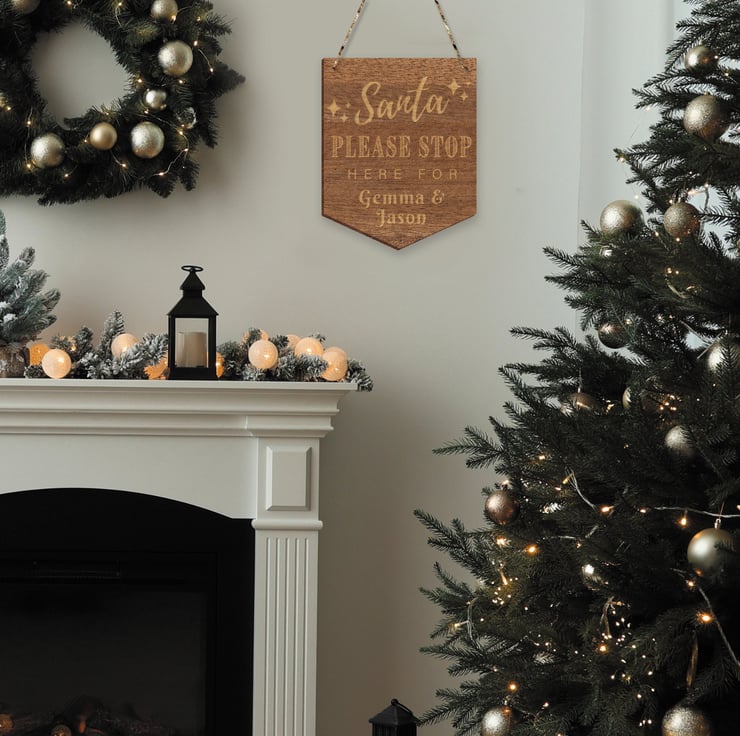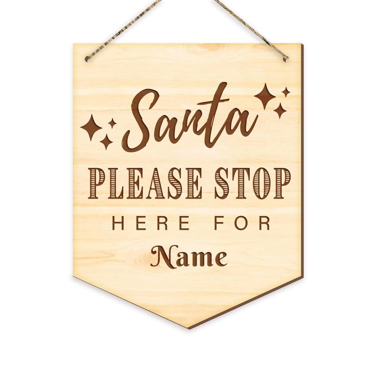 Get Santa to make a stop at your home with this beautifully engraved wooden Christmas hanging sign. Personalise with your kids name and create an extra special piece of decor that will bring excitement every year!