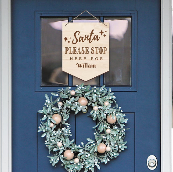 Santa Stop Here Sign Personalised Hanging Plaque For Kids Christmas Santa