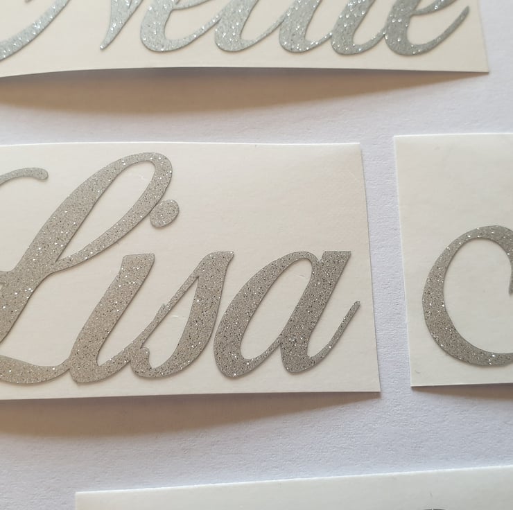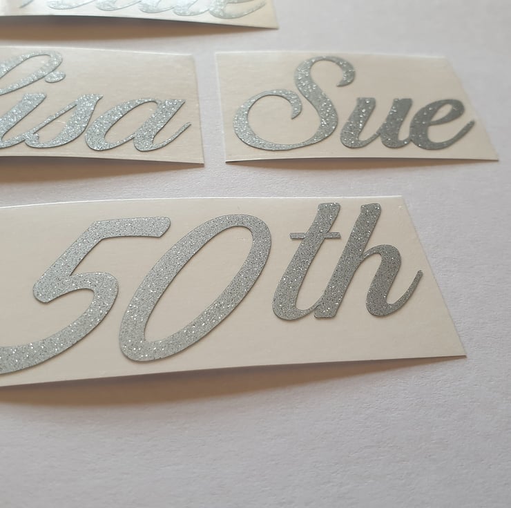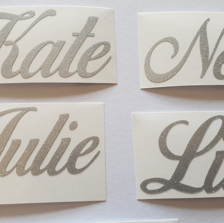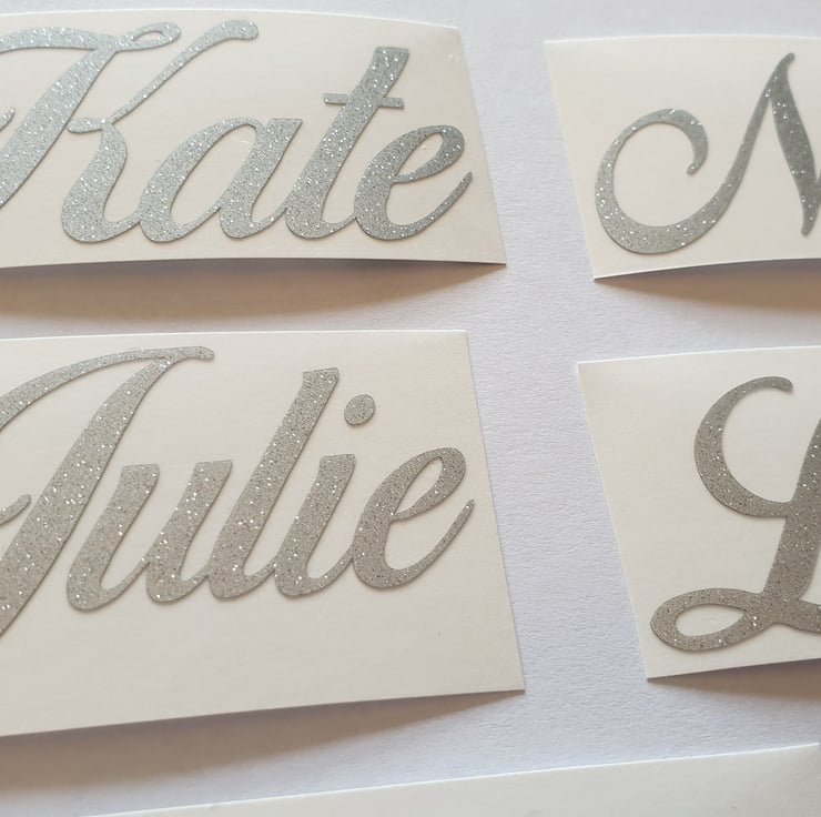 Beautiful personalised silver glitter stickers suitable for many occasions such as Weddings, Christenings, Birthdays, Hen Do etc. Also perfect for Bottles, Boxes, Glasses, Water Bottles and more.