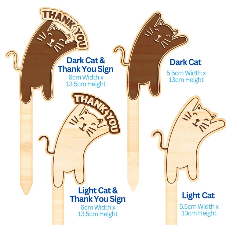 - Light Cat & Thank You Sign - 6cm Width x 13.5cm Height