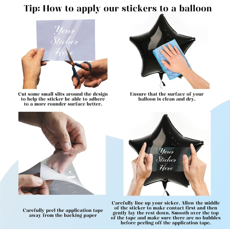 For strong helium FOIL BALLOONS ONLY. It is your responsibility to only apply and display this sticker when the balloon is fully inflated. Deflation may cause the sticker to peel off.