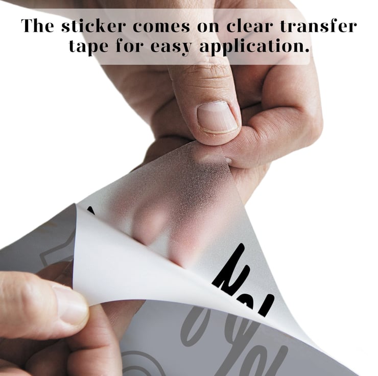 Our stickers arrive on clear transfer tape to make the application process super easy. Want to know the best way to apply the sticker? Instructions can be found within the pictures provided.
