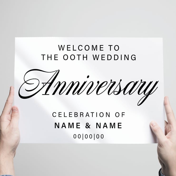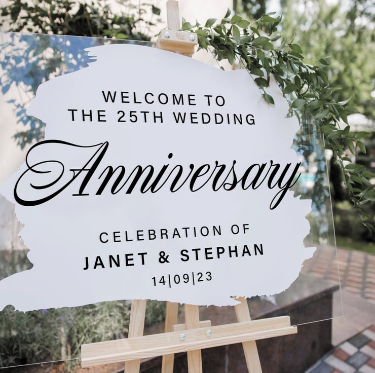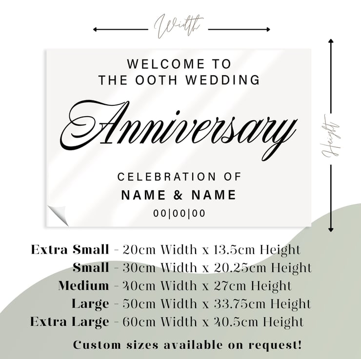 We have a range of sizes and colours to choose from. This sticker allows you to add your anniversary number, names & date onto the design to make it extra special.