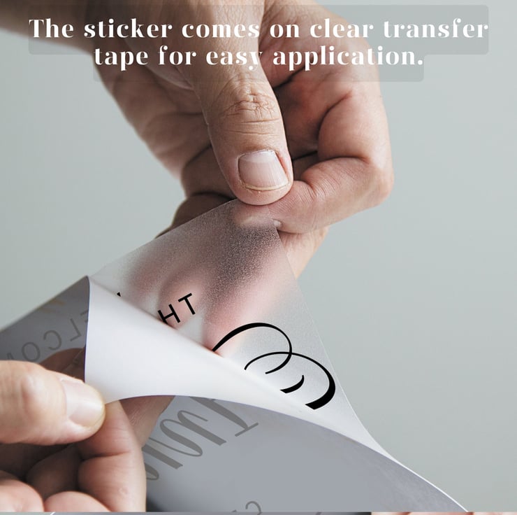 Our stickers arrive on clear transfer tape to make the application process super easy. Want to know the best way to apply the sticker? Instructions can be found in the pictures provided.