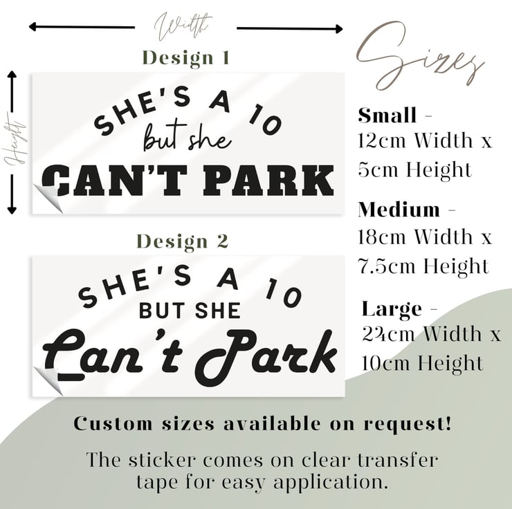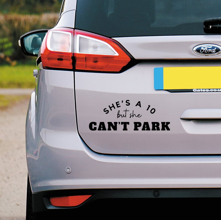 She's A 10 But She Can't Park Sticker Decal - Car Vinyl Bumper Sticker Decal