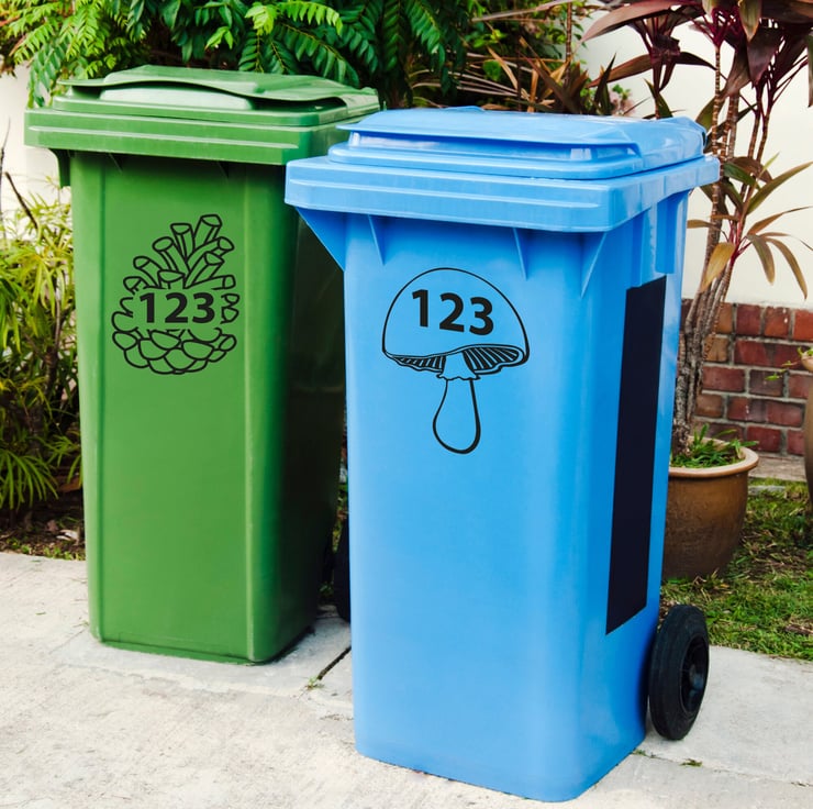Three amazing forestwoodland themed stickers for you to personalise and upgrade your bin! Wheelie bin number stickers are essential but why be boring about it? Spruce up your bin and street with these beautiful illustrated forest icons.