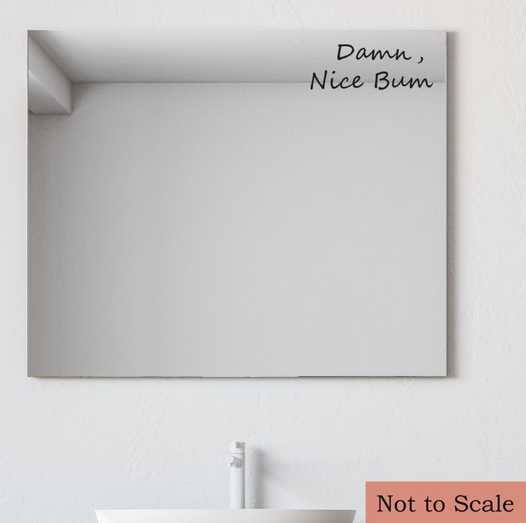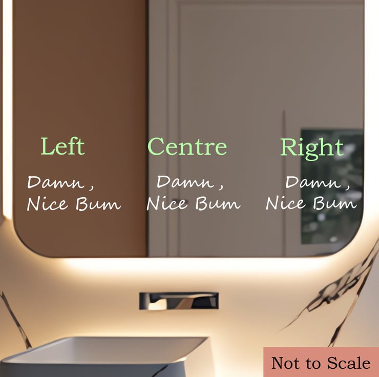 With a choice of the wording being left, right, or centered to suit the mirror you are working with.