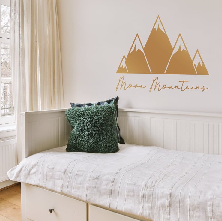 Our beautiful move mountains vinyl sticker is the perfect way to decorate your child's room. With a positive theme, create an amazing cosy, playful and contemporary aesthetic.