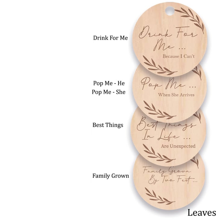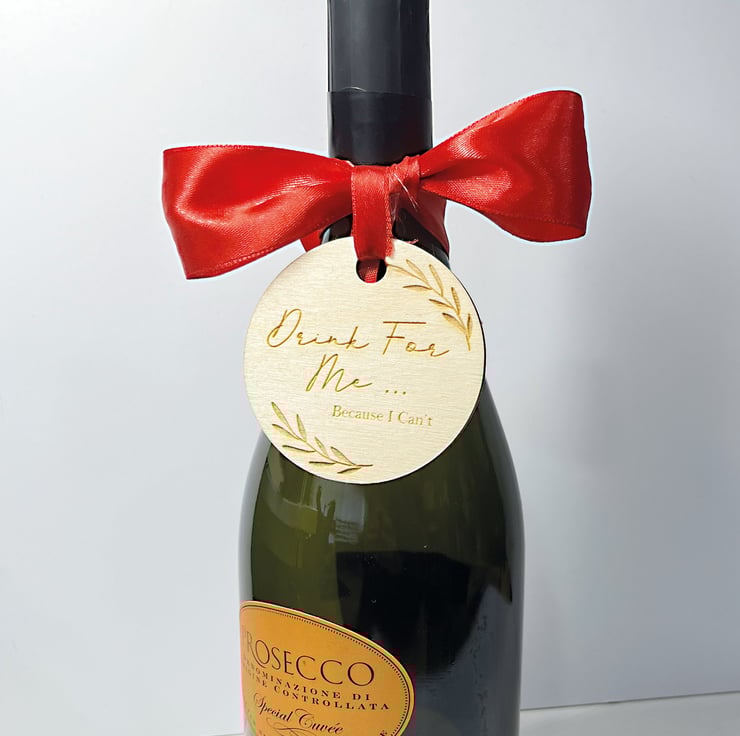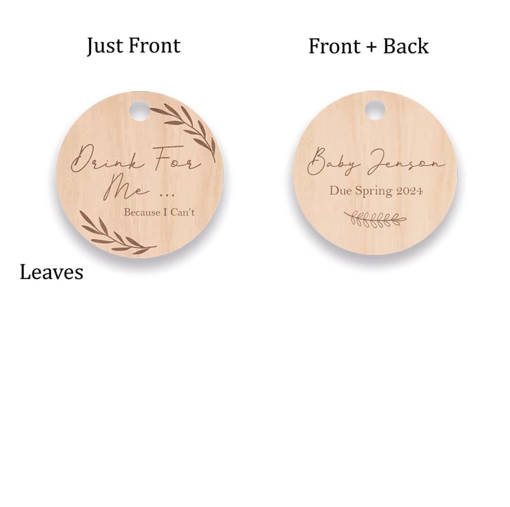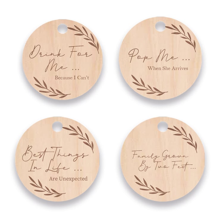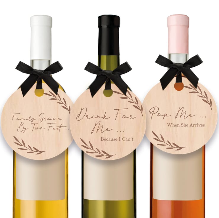 Make the announcement special with these engraved birch wood charms to go on wine bottles.