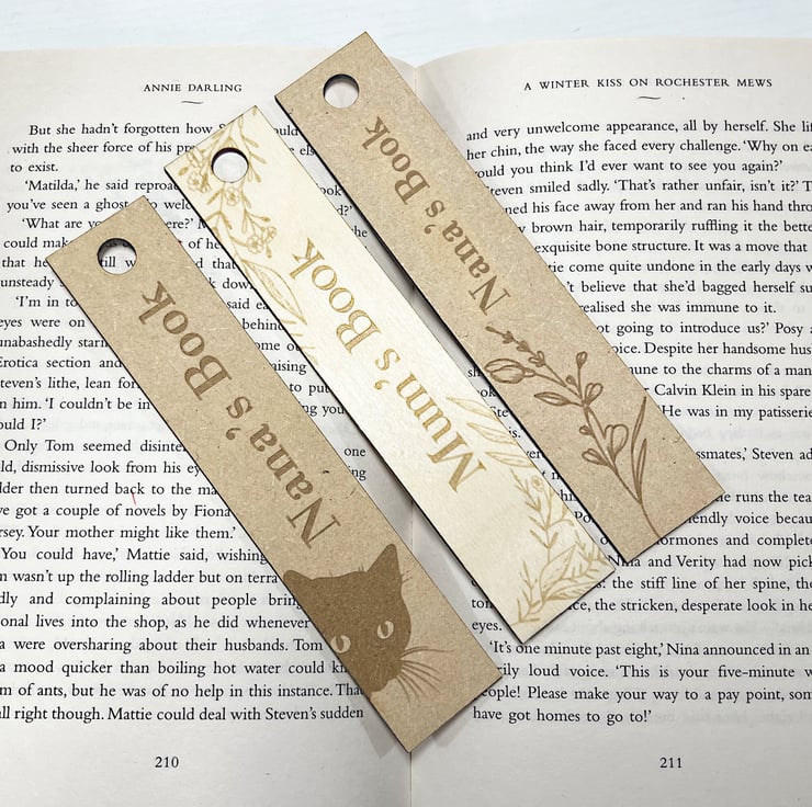4 Designs to choose from. These personalised wooden bookmarks are a great Birthday, Mother's Day, or Christmas gift.