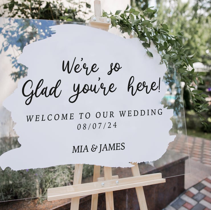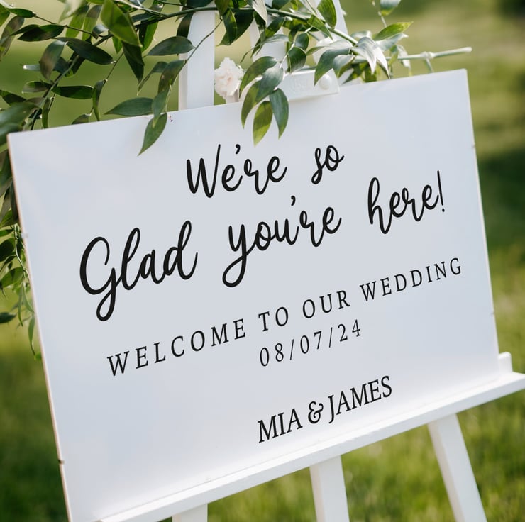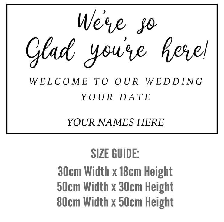 We're So Glad You're Here - Personalised wedding welcome sign vinyl label only - Sign is not included