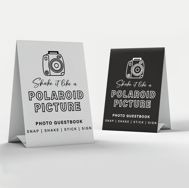 Photo guestbooks are in trend and are an amazing way to treasure your special day. Elegant, fun and informative, this is the perfect sticker for your DIY sign. Help your guest discover your guestbook and enjoy following the simple instructions: snap, shake, stick & sign!