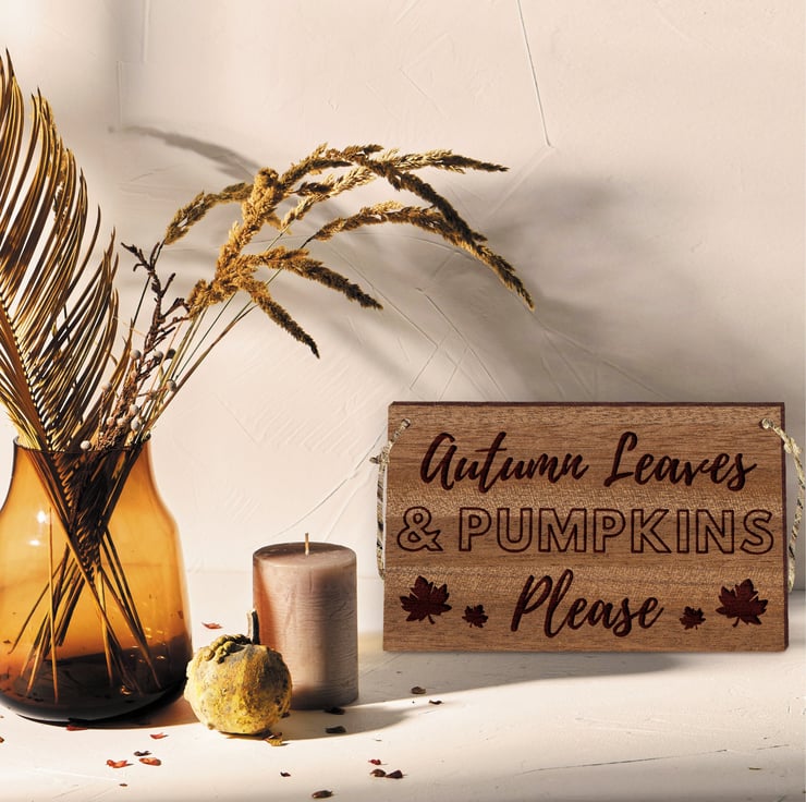 Fall into autumn the right way with this beautiful wooden hanging sign. Engraved with the perfect cosy quote, this sign is available in a wide selection of woods. Matches any home aesthetic but works amazingly with a minimal, boho, farmhouse, & rustic!