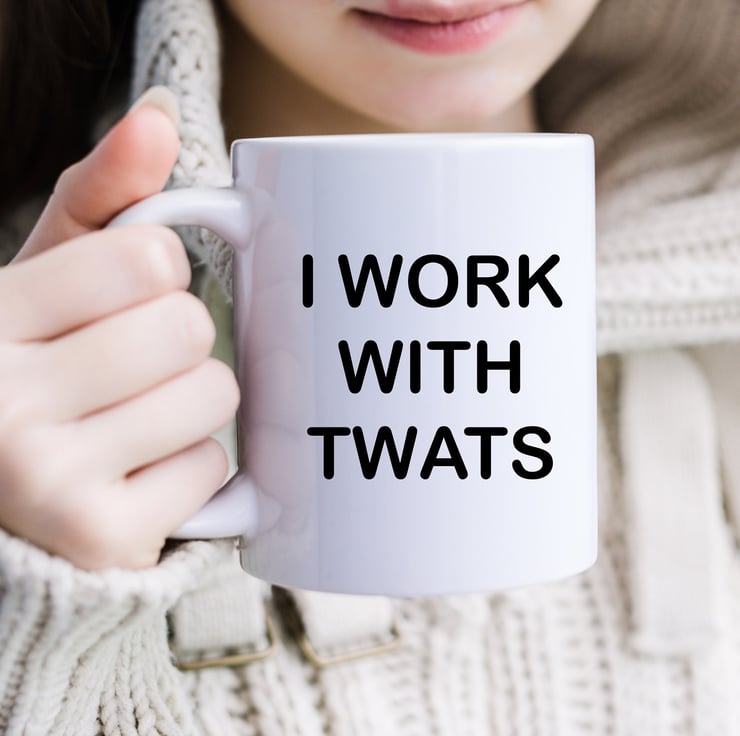 Beautiful personalised "I work with Twats" Mug. Perfect gift for someone special on any occasion.