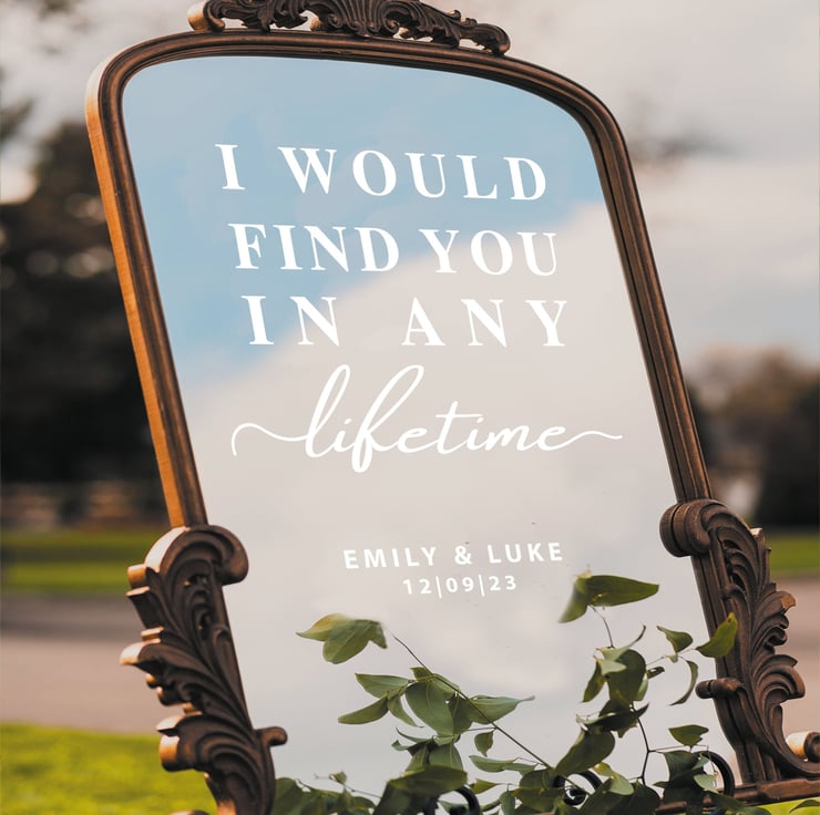 Add an elegant personalised touch to your party with this fun mirror decal. Give your guest the perfect welcome and themed photo opportunity all in one. With five sizes available, this decal looks great on any mirror.