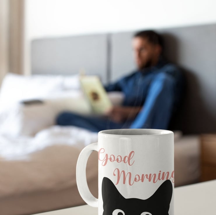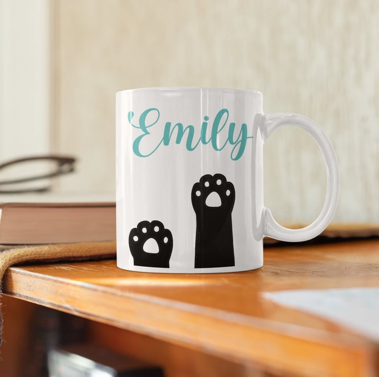 Personalised Cat Name Mug Good Morning Black Cat Paw Prints Cat Lover Paws