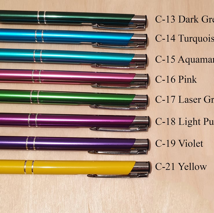 Please send the colour choice (see advert pictures), symbol and along with the engraving details for each pen.