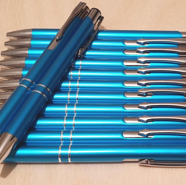We have a wonderful range of colours available, Please select your colour, and symbols and add your message. The pens have a nice weight to them and feel very elegant. Each pen has blue ink but we do sell black refills if you would like to change the colour.