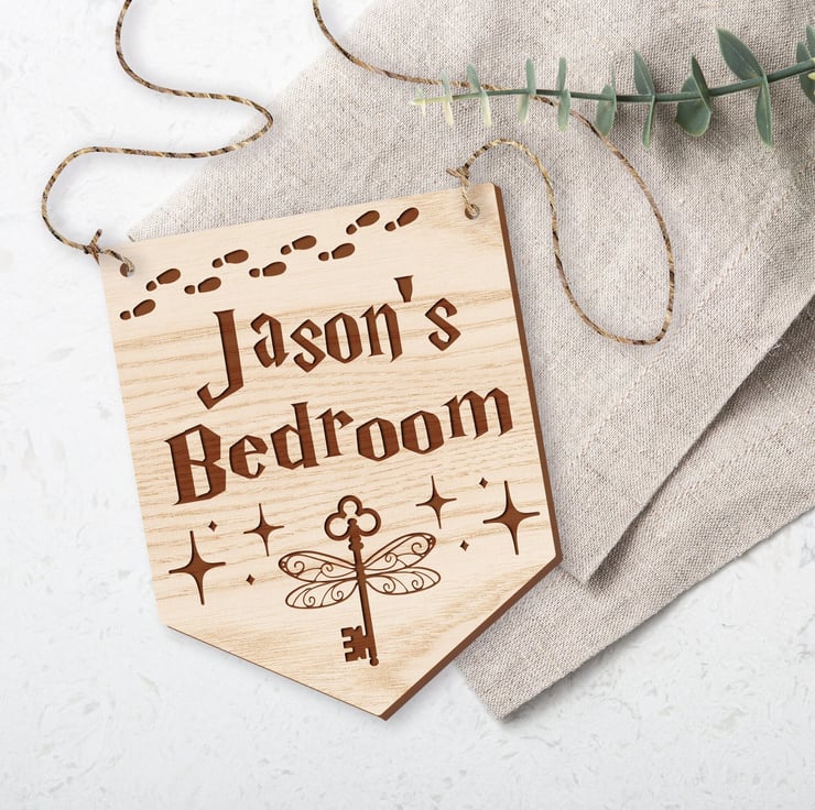 Beautifully engraved magic themed, wooden hanging sign for children's bedroom. Two designs and a selection of wood to choose from. Matches any home aesthetic but works amazingly with a minimal, boho, farmhouse, & rustic!