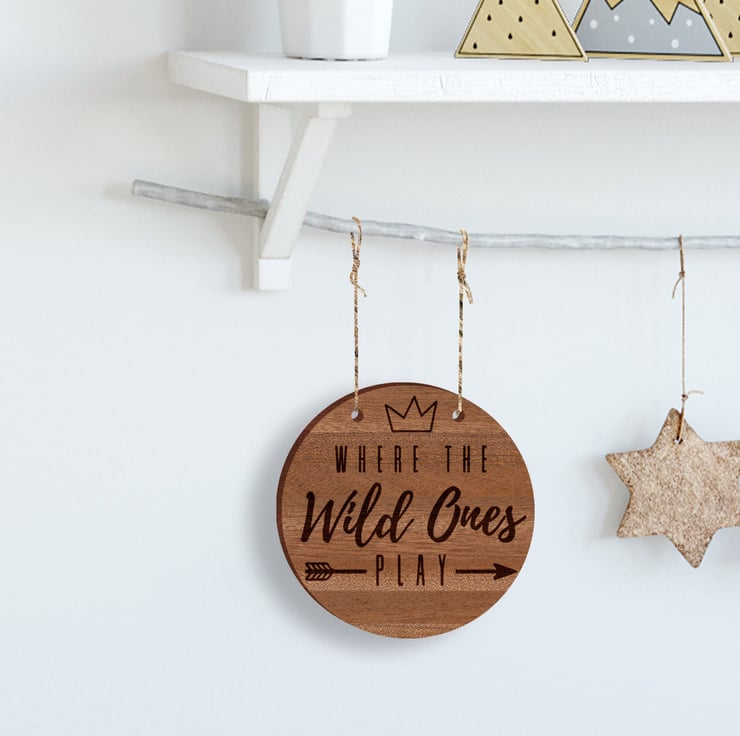 Beautifully engraved wooden hanging sign for children's bedroomplayroom. A selection of sizes and wide range of wood to choose from. Matches any home aesthetic but works amazingly with a minimal, boho, farmhouse, & rustic!