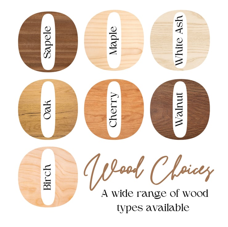 Wood Options: 3mm Birchwood or 6mm Sapele, Cherry, Walnut, Maple, White Ash, or oak