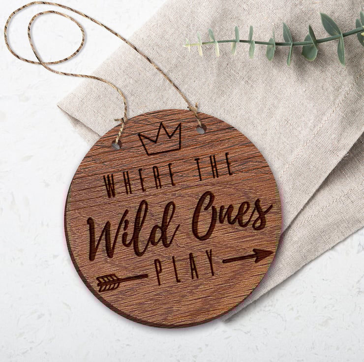 Beautifully engraved wooden hanging sign for children's bedroomplayroom. A selection of sizes and wide range of wood to choose from. Matches any home aesthetic but works amazingly with a minimal, boho, farmhouse, & rustic!