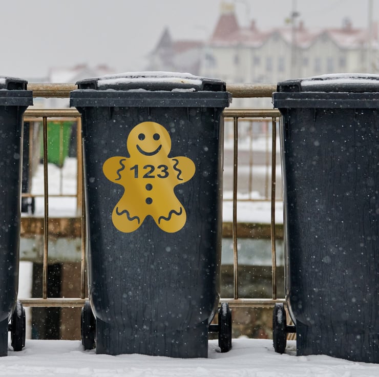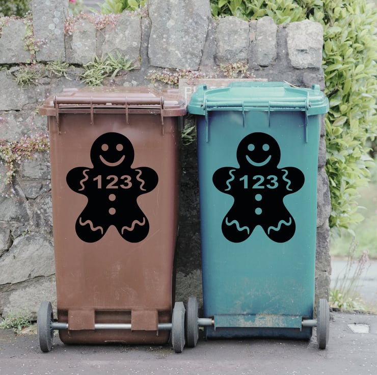 Gingerbread Man Wheelie Bin Sticker - Personalised Sticker Custom Number House