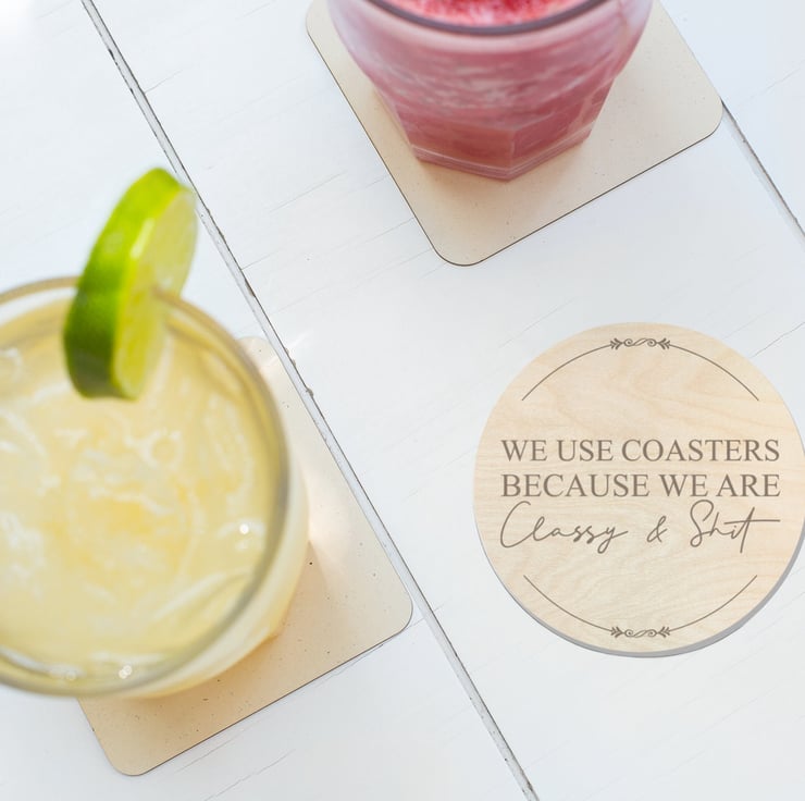 Beautifully engraved, funny quote, wooden coaster for a housewarming gift - Great for Christmas and Birthday.