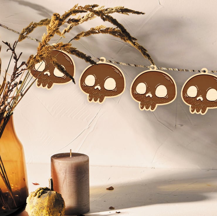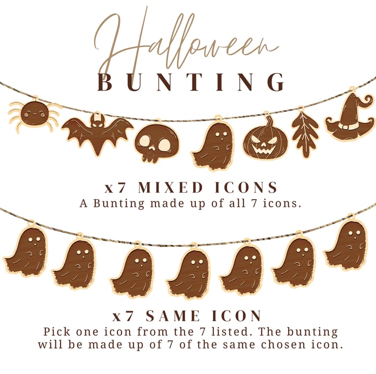 Elevate your home this autumn with this beautifully engraved, modern, Halloween garland. With 7 different iconscharacters to choose from or mix! This bunting gives off the ultimate cosy vibes.