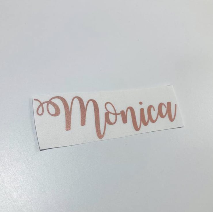 The 'Example colour' is only a plain piece of vinyl 2cm x 2cm of the chosen colour choice. If you pick this option this will NOT come with a name.